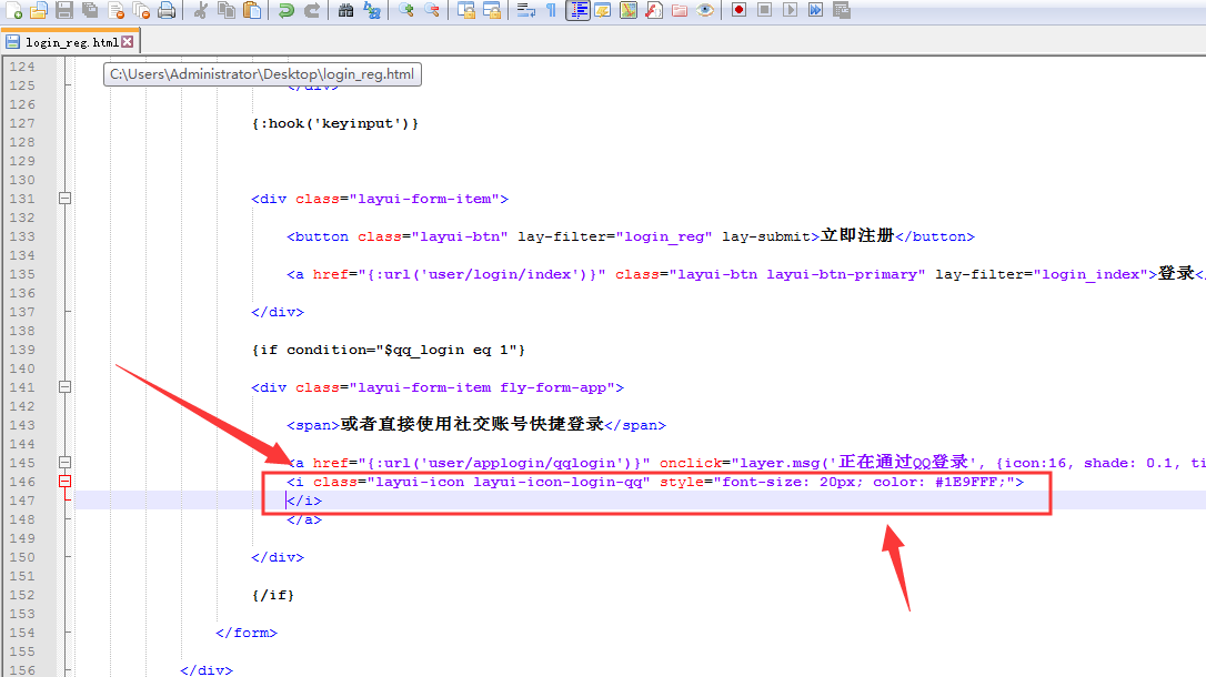 记得添加在A标签里,然后把login_reg.html上传直接覆盖就好了